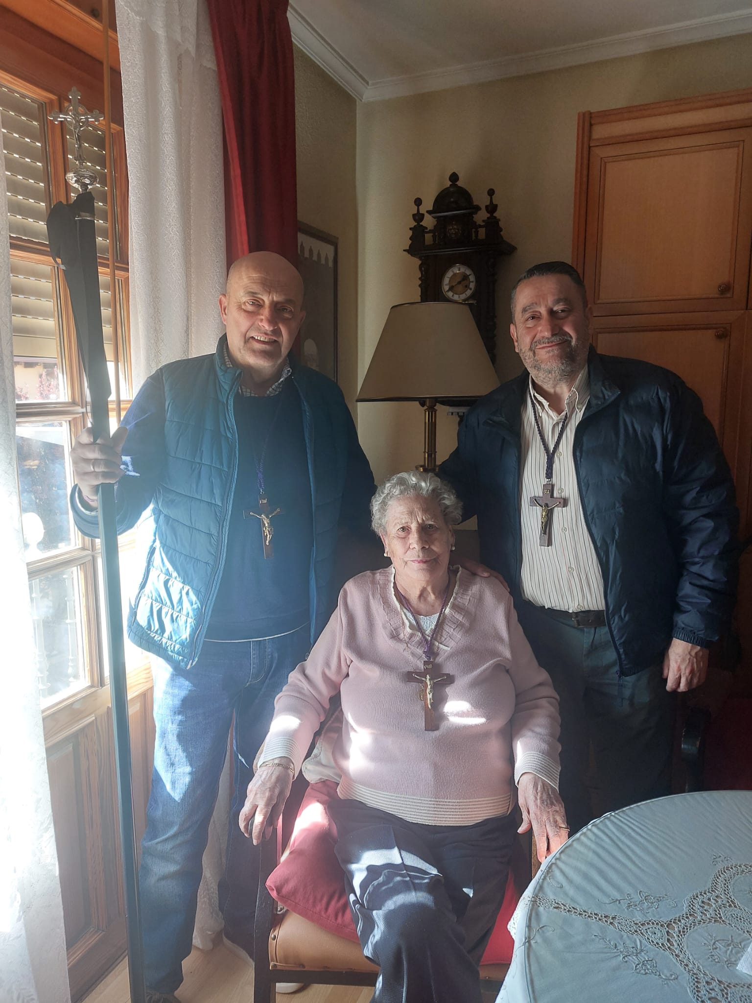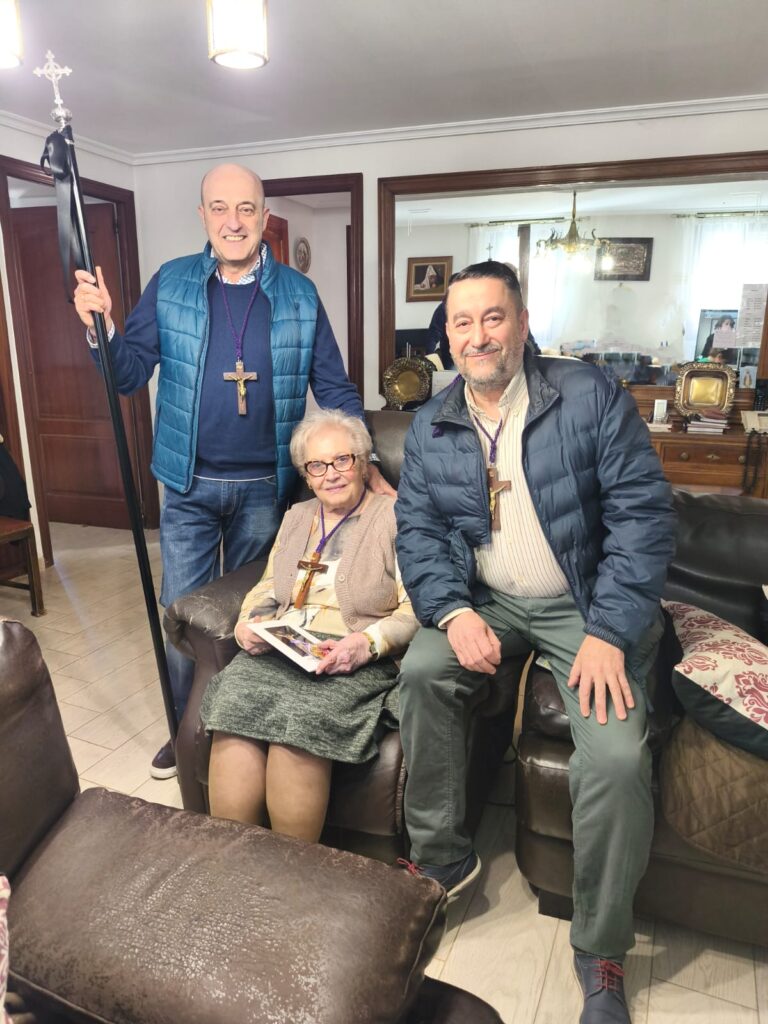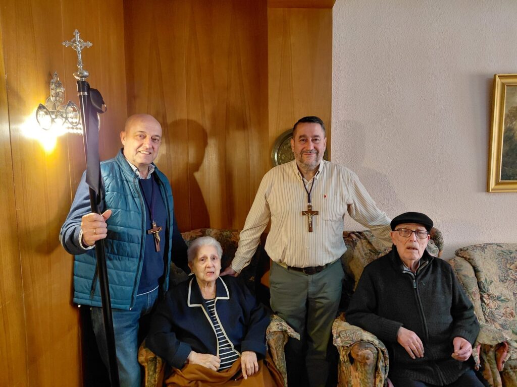 Nuestro presidente, junto a nuestro mayordomo con la vara mayor, visitaron en sus domicilios a aquellos hermanos y hermanas que, por su situación de dependencia, no pueden compartir con nosotros los actos de esta, su hermandad, pero que siguen siendo parte esencial de ella.